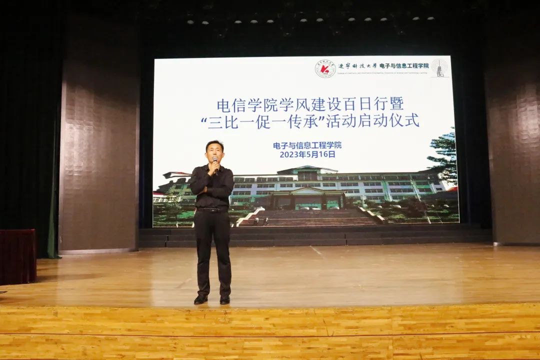 为深入学习贯彻习近平新时代中国特色社会主义思想,落实《米兰app官网版下载官方版进一步加强内涵建设 服务辽宁全面振兴新突破三年行动方案》要求,加强学风建设和文化建设,营造良好的育人环境,5月16日,电信学院于校礼堂举行学风建设百日行暨“三比一促一传承”活动启动仪式,此次活动由电信学院党委书记王会立主持,电信学院21、22级全体学生参加。