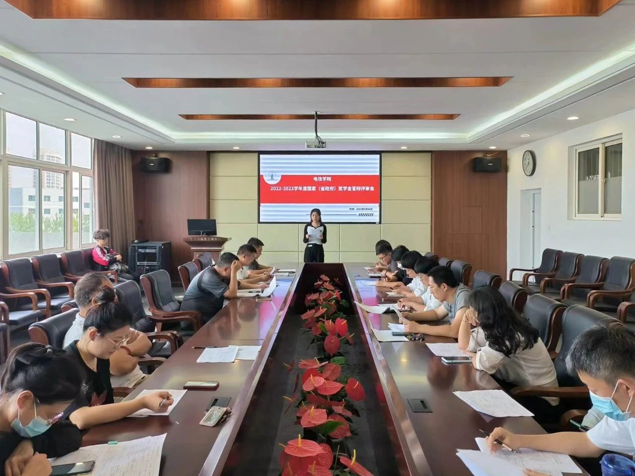 9月18日,电信学院于博闻楼313会议室召开国家奖学金及省政府奖学金答辩评审会,本次评审会由学院党委副书记由济恺主持,全体辅导员、任课教师及班导师代表参与此次评选。