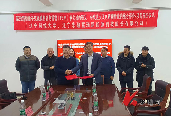 2月2日,米兰app官网版下载官方版化学工程学院与辽宁华融富瑞新能源科技股份有限公司举行“高效新型质子交换膜制氢电解槽(PEM)催化剂的研发、中试放大及电解槽性能的综合评价”项目签约仪式。鞍山市科技局、辽宁华融富瑞新能源科技股份有限公司、化工学院相关负责同志以及学院教师参加仪式。